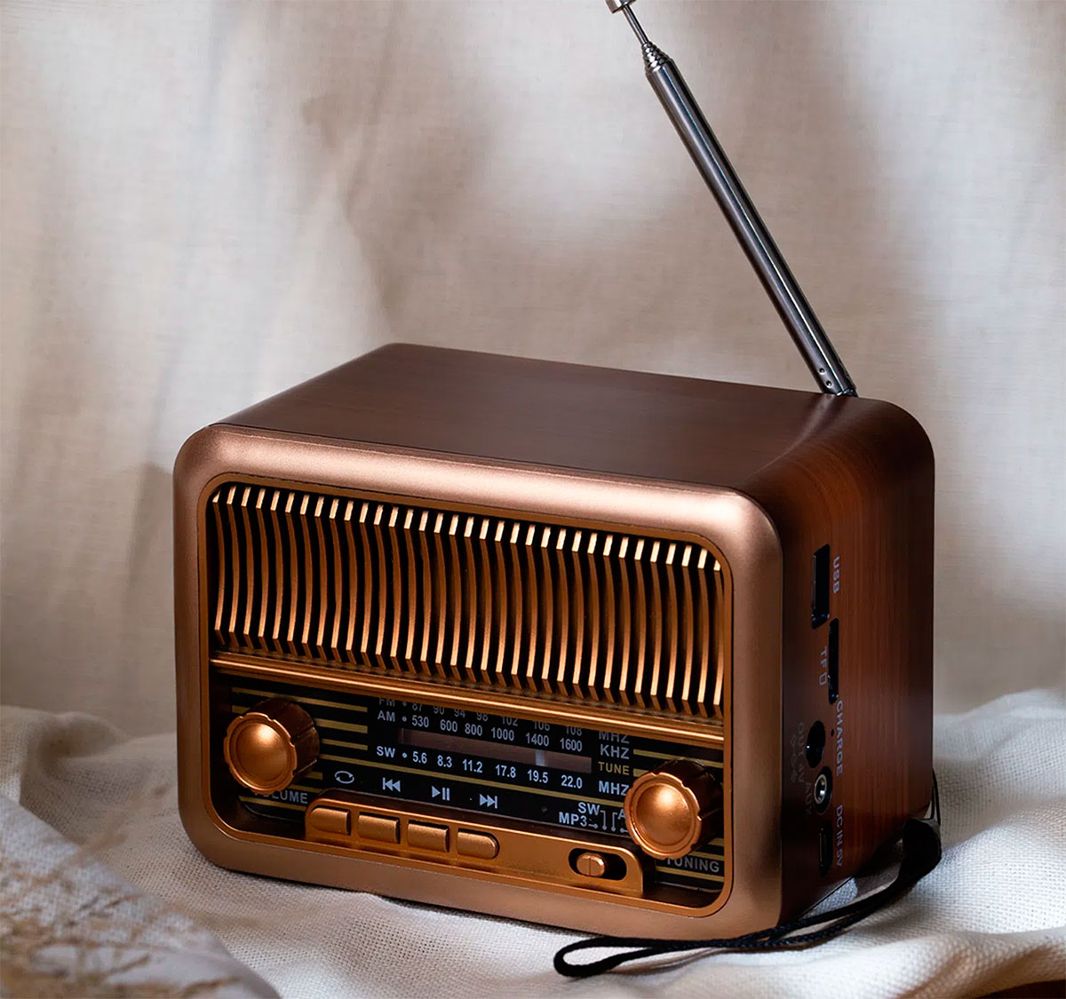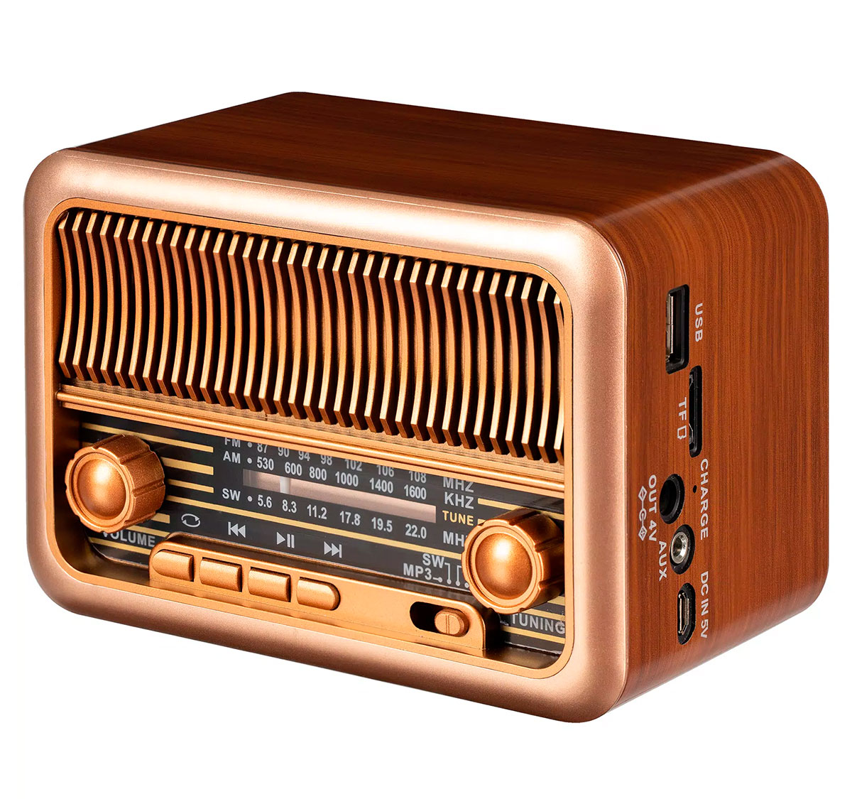 FM-радио в диапазоне 87,5–108,0 МГц, AM в диапазоне 530–1600 КГц, SW в диапазоне 5,6–22,0 Мгц