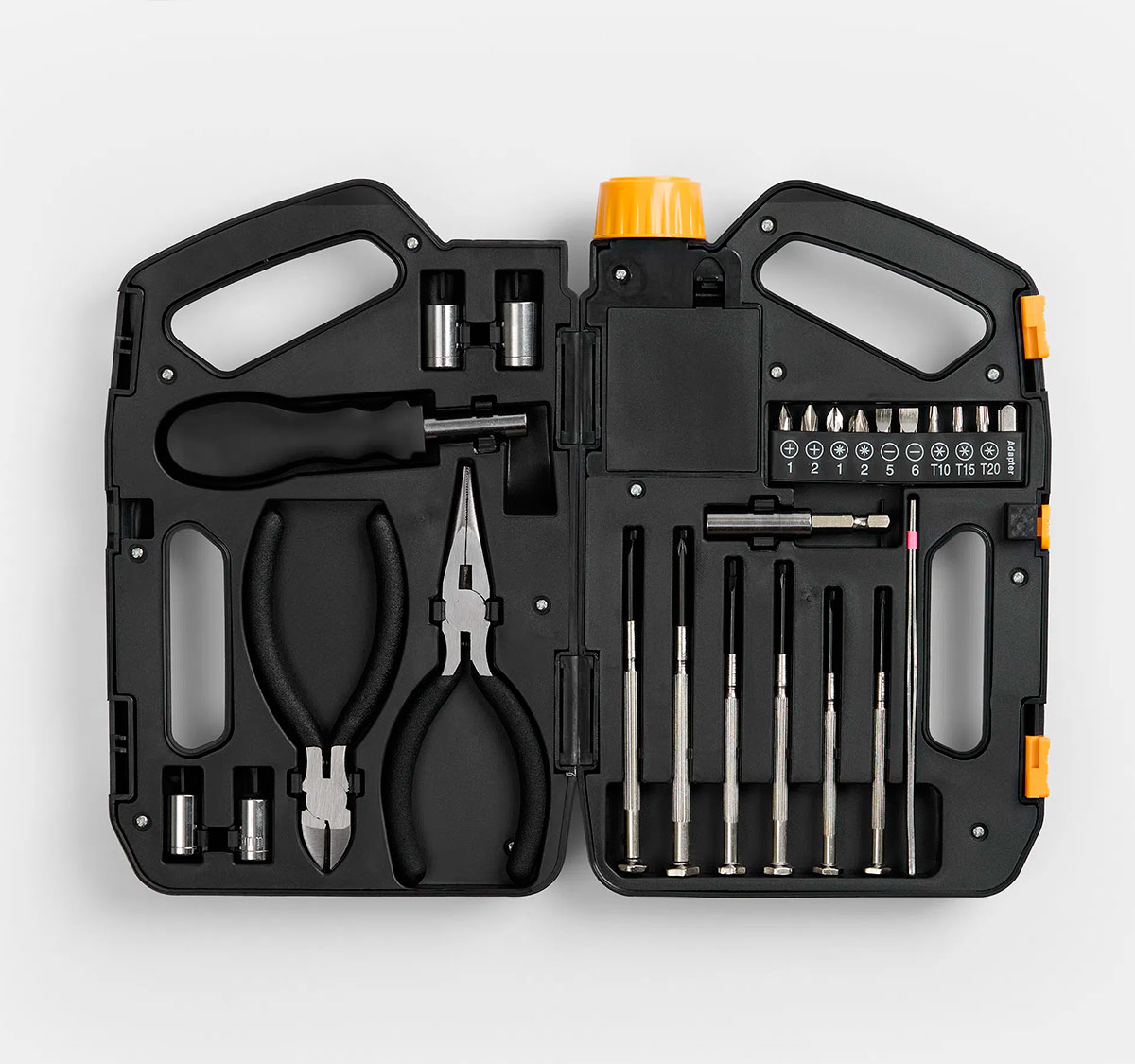 В кейс встроен фонарик.Питание фонарика: батарейки ААА 1,5 В, 4 шт. (в комплект не входят).