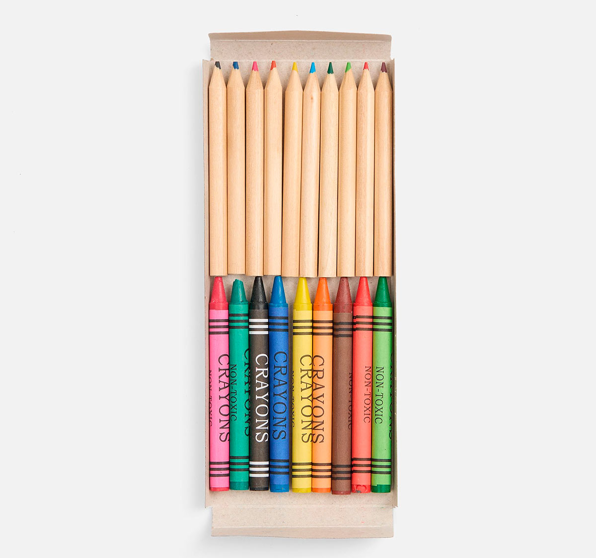 • Набор из 10 цветных карандашей и 9 восковых мелков.